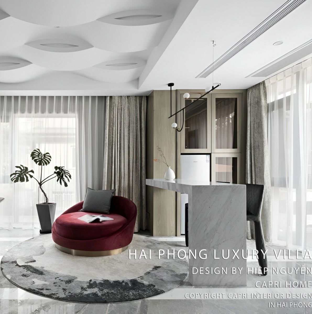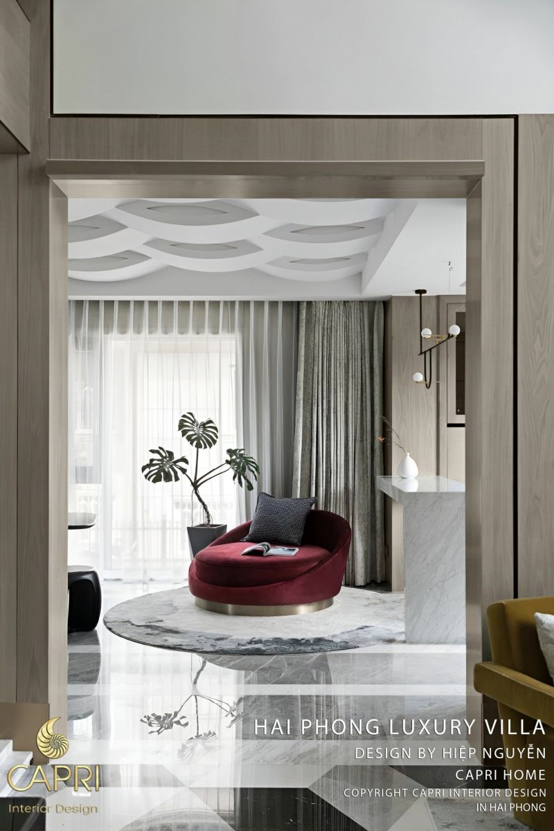 Mang tới thành phố hoa phượng đỏ một không gian sống ĐẸP – TIỆN NGHI – HIỆN ĐẠI!!! HAI PHONG LUXURY VILLA design by NTK HIEP NGUYEN Thông tin công trình: Công trình: Hai Phong Luxury Villa Phong cách: Hiện đại Thiết kế, thi công & hoàn thiện nội thất: CAPRI LUXURY HOME Diện tích:350 m2 Địa điểm: Thành Phố Hải Phòng Dự án lần này, không chỉ dưới cương vị một nhà chuyên gia, mà đòi hỏi nhà thiết kế phải có “phong cách sống” để thấu hiểu và hiện thực hóa những nhu cầu, mong ước cho Gia Chủ. Cùng chúng tôi chiêm ngưỡng căn villa dành tặng cho Gia Chủ yêu thích sự thanh lịch & hiện đại.