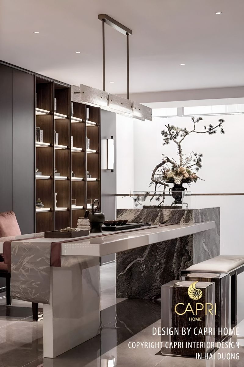 Được xem như bữa tiệc buffet nội thất với nhiều phong cách kết hợp từ Trung Hoa, Tân cổ điển, Hiện đại... Những phong cách thiết kế nội thất này dung hòa với nhau hoàn hảo tới mức Quý Vị không tìm được điểm lộn xộn, điểm “trái mắt” nào trong không gian.